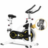 Спин-байк RAVS чёрного цвета имеет прочную стальную раму, что повышает его устойчивость и обеспечивает быструю езду. Он также оснащен большим алюминиевым маховиком с инерционным весом 19 кг, который обеспечивает дополнительный импульс и реалистичные ощущения от езды с препятствиями. Максимальный вес пользователя до 150 кг. В спин-байке RAVS используется система двойного магнитного сопротивления, которая является уникальным методом тренировки. Шесть двухрядных неодимовых магнитов обеспечивают регулируемое сопротивление с более широким диапазоном, чем у традиционных велосипедов, поэтому вы можете наслаждаться ездой на шоссейном или горном велосипеде, не выходя из дома. Бесступенчатая регулировка и равномерное сопротивление помогают снизить уровень шума и воздействия на ваши суставы, делая тренажёр тихим и безопасным. Магнитный велотренажер оснащен жидкокристаллическим дисплеем и датчиком частоты сердечных сокращений, который отслеживает вашу скорость, количество оборотов в минуту, сожженные калории, пройденное расстояние и время тренировки. Регулируемая высота сиденья позволяет вам найти идеальное положение для вашего руля. Усовершенствованная подушка сиденья фитнес-велосипеда легко регулируется вверх на 6 уровней, вниз, вперед или назад. Это позволяет любому легко и удобно регулировать магнитный велосипед в соответствии со своими личными потребностями в упражнениях. Мягкое, эластичное и воздухопроницаемое седло гарантирует, что ваше тело будет чувствовать себя безопасно и комфортно во время занятий на велосипеде. Руль регулируется на 6 уровней по высоте. Разработанный для экономии места, этот домашний велосипед можно легко перемещать с помощью колёс. Сборка спортивного велосипеда очень проста благодаря руководству по эксплуатации и инструментам, входящим в комплект поставки. Наслаждайтесь тренировками с магнитным сопротивлением на своем домашнем велосипеде, не беспокоясь о погоде.