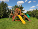Детская площадка Выше Всех Новая Победа 25 разработана как для индивидуального использования на большом участке, так и для общественных мест на территории СНТ или коттеджных поселков. Модель отличается широким набором элементов, которые будут интересны как малышам, там и детям постарше. Особенно данная модель понравится активным любителям лазилок, ведь здесь целых два модуля с канатной сеткой, скалодоромом и альпинистской стенкой! Изюминка модели Новая Победа 25 является мостик, соединяющий два моделя: качельный и модуль со скалодромом и сеткой-лазалкой. На этом мостике можно поиграть в крестики-нолики, можно использовать по прямом назначению, а можно разыгрывать целые ролевые сюжеты с поисками кладов, спасением принцессы из башни или захватом пиратского корабля! Какая бы фантазия не посетила вашего ребенка, он сможет ее реализовать на площадке Новая Победа 25.