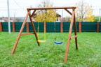 Деревянные качели с металлическими элементами крепления "Выше Всех" надежны, красивы и точно понравятся детям.