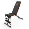 Максимально допустимая нагрузка на скамью - до 150 кг. Спинку скамьи возможно отрегулировать в 2-х положениях: на 75° вертикально и на 14° горизонтально. В горизонтальном положении спинки на тренажёре возможно выполнить обратную гиперэкстензию. Сиденье регулируется в 3-х положениях по высоте: -10°, 0° и 30°. Обивка скамьи и валиков изготовлена из водонепроницаемого плотного материала.